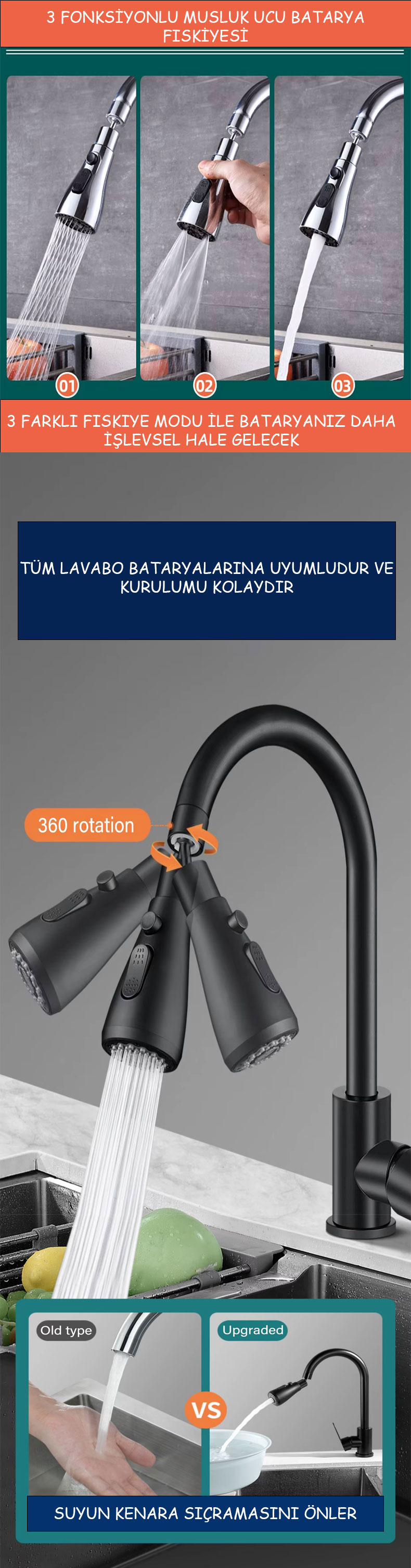 3 Adet FONKSİYONEL METALIK MUSLUK -